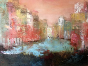 Stadsgezichten in verschillende formaten, vormen, technieken en kleuren met steeds een eigen sfeer. Is het de dynamiek, drukte, rust, sfeer, lijnenspel of juist de kleuren die indruk maken?