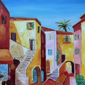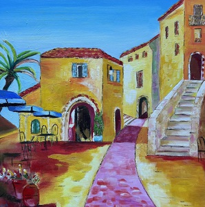 2012Zomerse sfeer in Frans dorp 2 in acrylverf