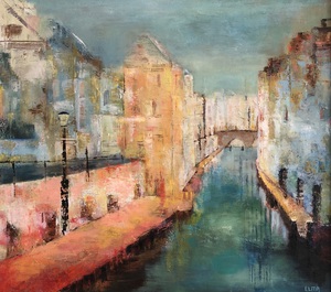 2020Oudegracht en werfkelders van Utrecht in olieverf