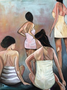 2015Vrouwen in rond in zachte tinten in olieverf