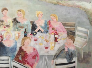 2016Borrelen met vriendinnen onder de boom in acrylverf